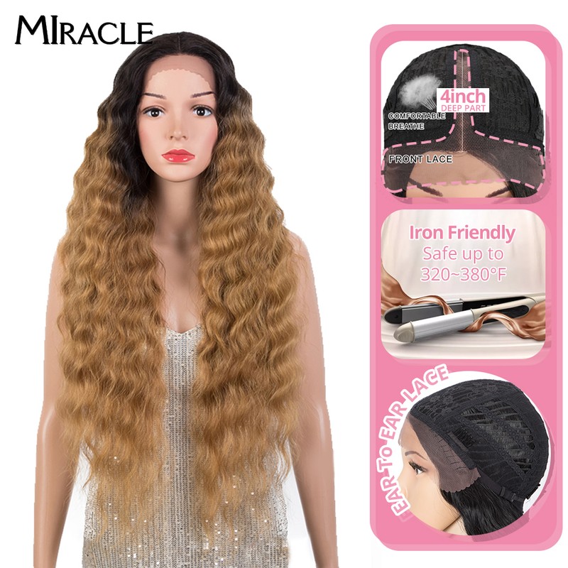 Pelucas De Encaje Rubio Sintético Para Mujer, Cabellera Lolita De Onda Profunda, 30 Pulgadas Rubio Degradado Fibra De Alta Temperatura, Miracle
