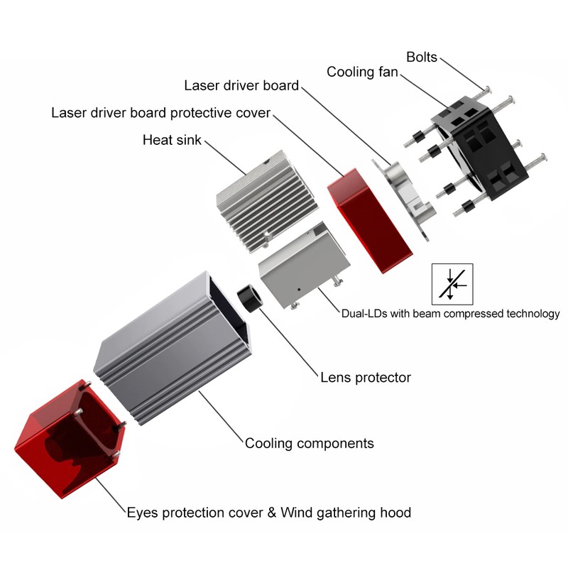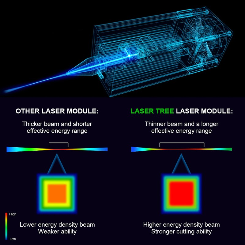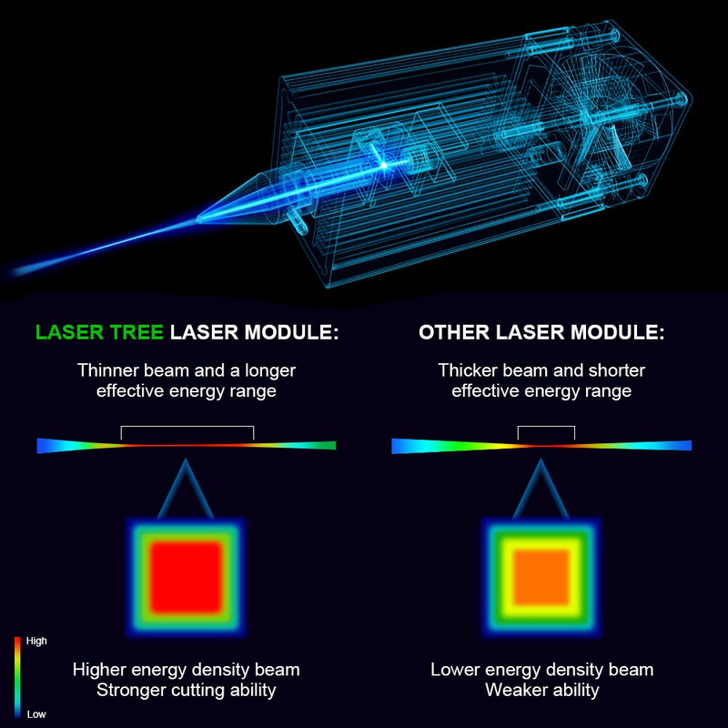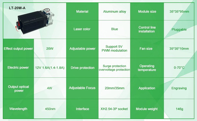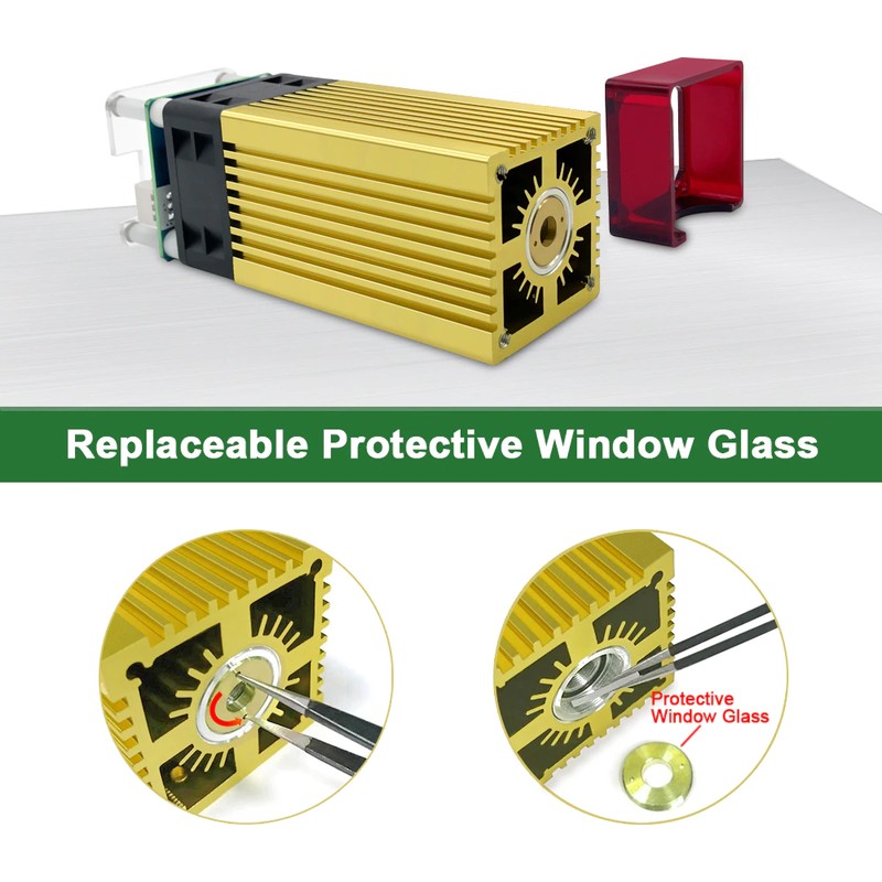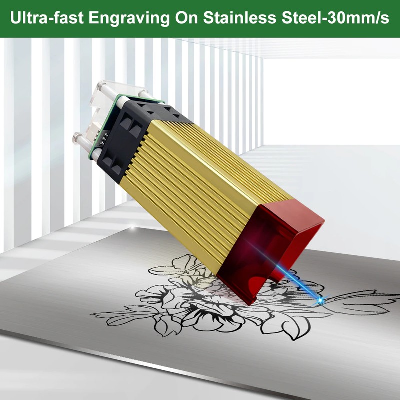 Módulo láser azul --- cabezal láser profesional con alta velocidad y alta estabilidad. Luz azul-Violeta brillante, fácil de localizar al grabar.