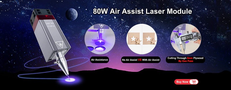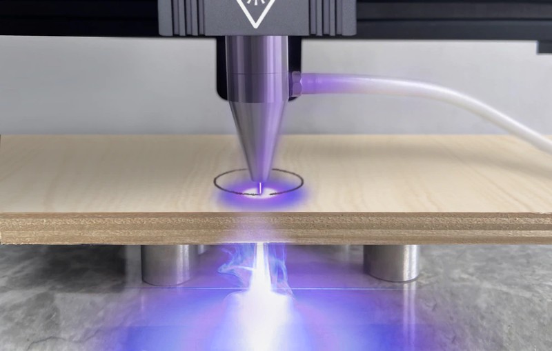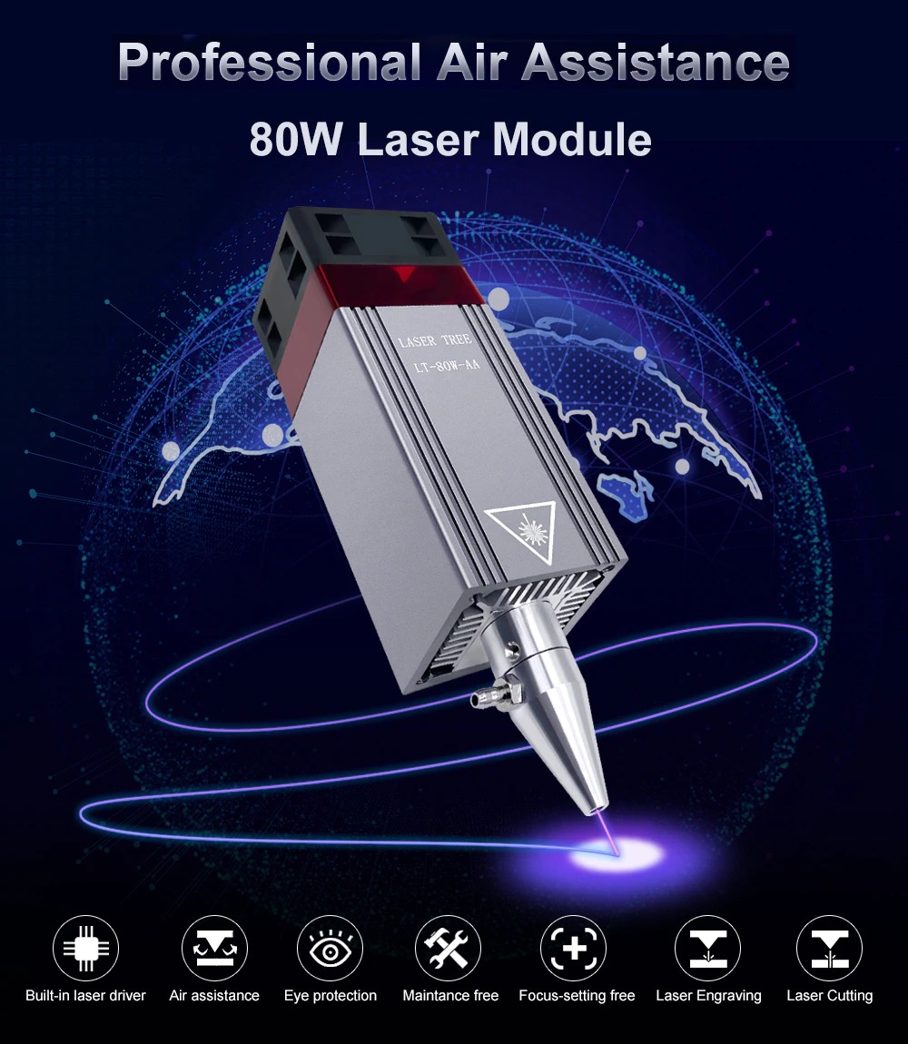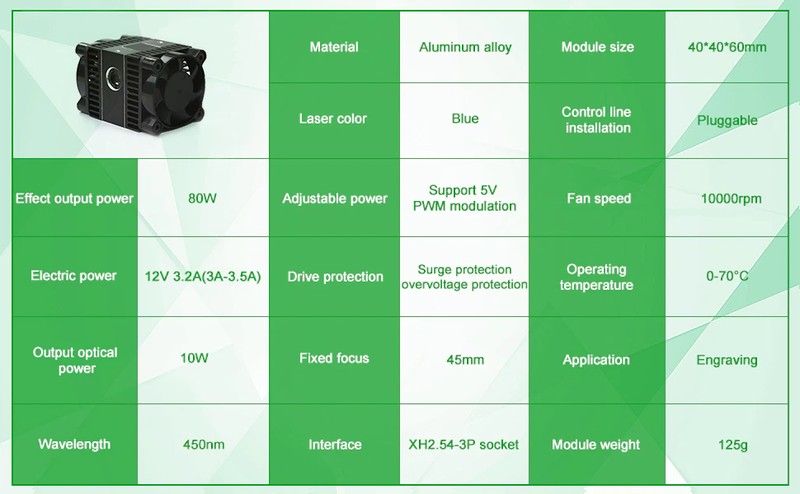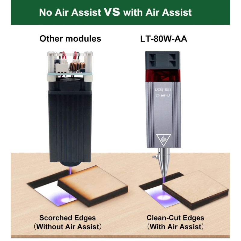 Módulo láser azul con asistencia aérea, alta velocidad, alta estabilidad, excelente efecto de corte, luz azul brillante, fácil posicionamiento al grabar.