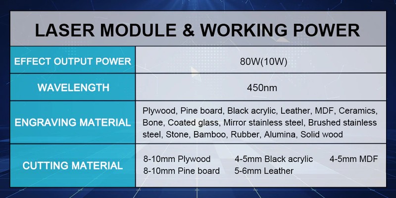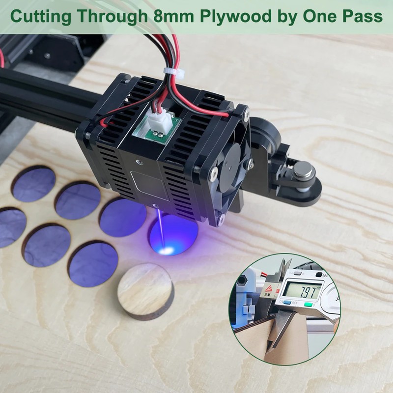 1. Módulo láser azul, un cabezal láser profesional con alta velocidad y alta estabilidad. Luz azul brillante, fácil de localizar al tallar.