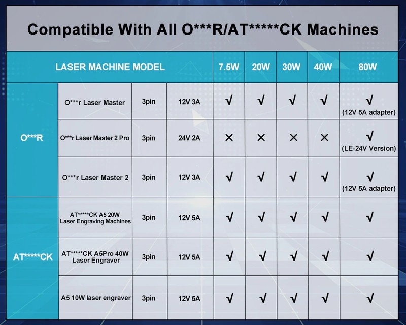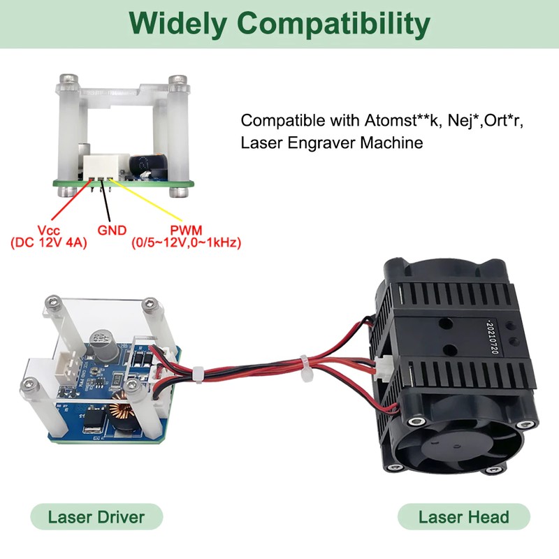 4. Amplia compatibilidad --- cabezal láser de 12V 4A, compatible con tipos de máquinas de grabado láser