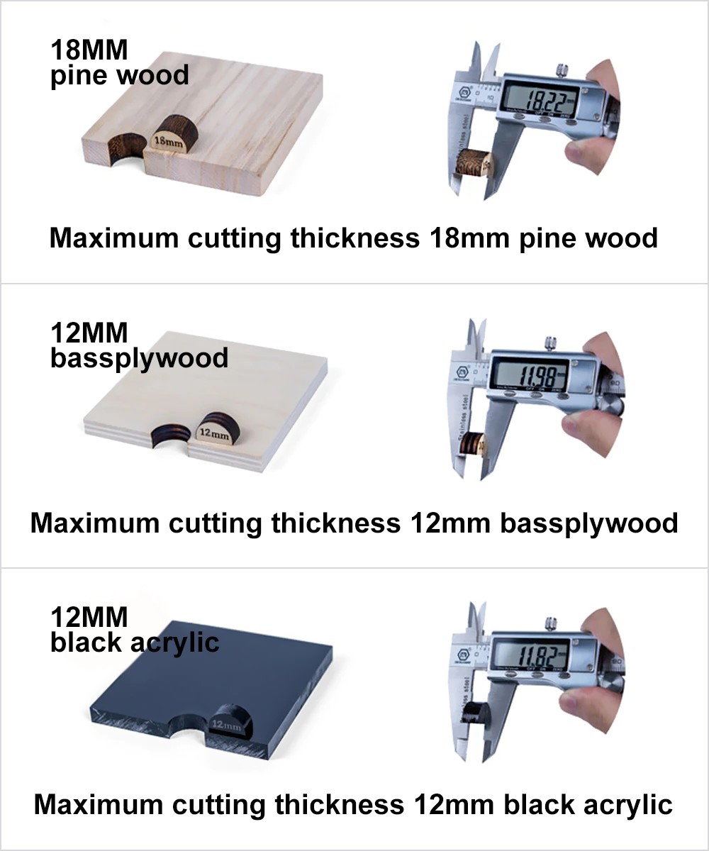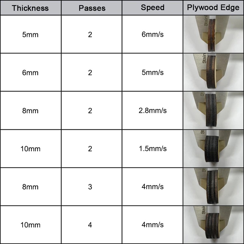 3. Notable capacidad de corte: corte de madera contrachapada de 8-10mm de espesor por un paso a velocidad de 1,5 mm/s.