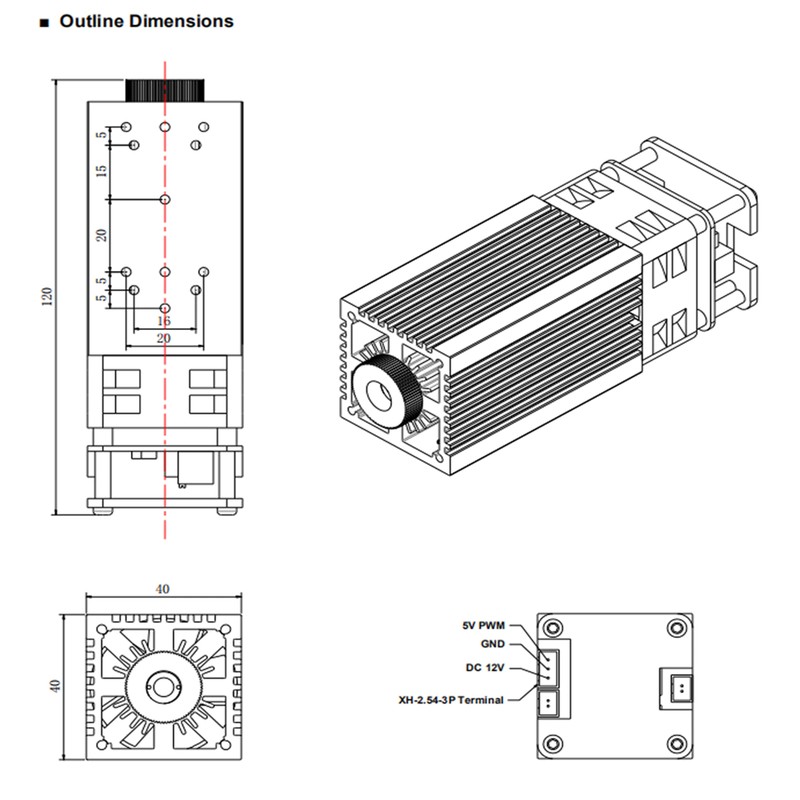 El módulo láser azul está especialmente diseñado para fresadora CNC y corte DIY. La longitud de onda es de 450nm, el enfoque fijo es de 45mm, que es una herramienta eficaz para el corte por láser. Pueden grabar y cortar varios materiales.