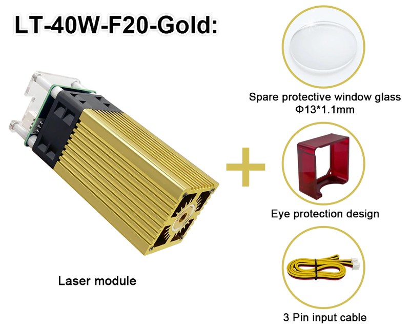 Característica Focus fijo de 3: 20 mm, adecuado para grabado de bricolaje (LT-40W-F20-Gold)