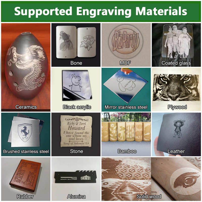[Materiales aplicables] cerámica, hueso, MDF, vidrio recubierto, acrílico negro, madera contrachapada, acero inoxidable cepillado, piedra, bambú, cuero, caucho, alúmina, madera sólida, etc.