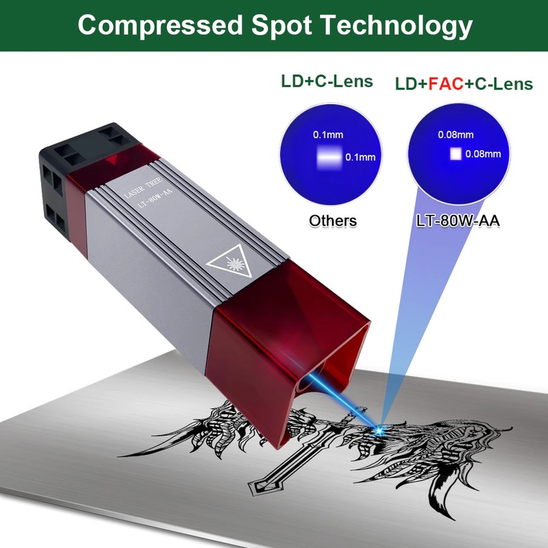 [Diodo Original con FAC] diodo Original, alta calidad, ¡20.000 horas de vida! FAC integrado para hacer el tamaño del haz mucho más pequeño en el foco, la densidad de potencia aumenta 4 ~ 5 veces, la velocidad de grabado aumenta 4 ~ 5 veces en consecuencia. Al mismo tiempo, la precisión también aumenta de 4 a 5 veces. La solución hace posible un grabado de alta velocidad y alta precisión.