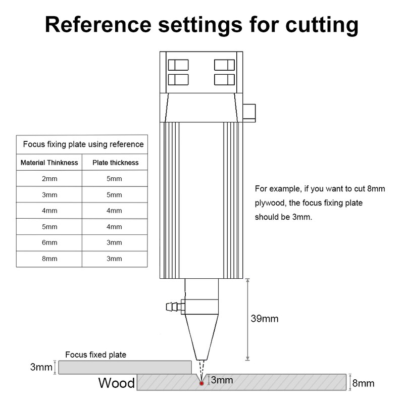 Enfoque ajustable --- cabezal láser ajustable, fácil de ajustar, garantiza un grabado de buena calidad y alta eficiencia.