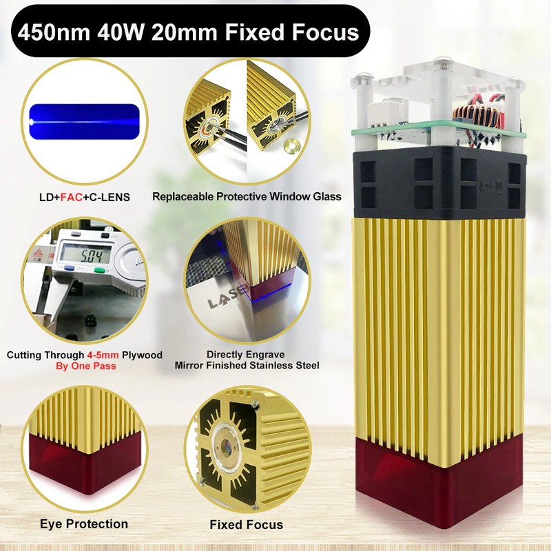 Árbol Láser 20W 40W 80W Módulo Láser 450Nm Cabezal Azul Para Máquina De Corte Diy Grabado Láser Herramientas De Trabajo De Madera