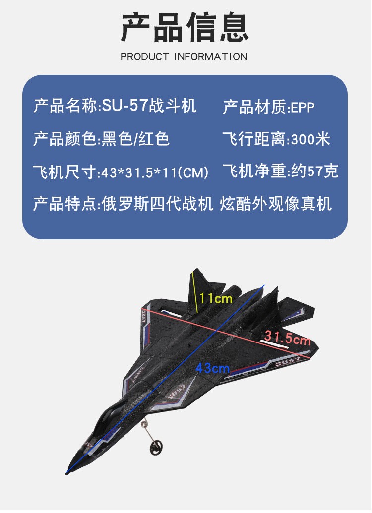 Avión Teledirigido Su 57, Nuevo Avión Teledirigido Con Ala Fija Ligera, De Espuma Control Remoto Eléctrico, Más reciente