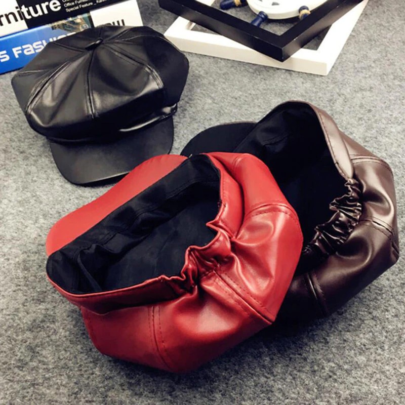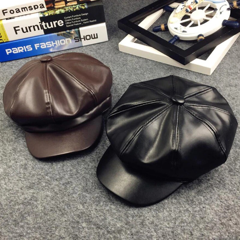 Boina Simple De Cuero Pu Para Niños, Sombreros De Mujer Elegantes Invierno, Boina Informal Octogonal Vintage Gorra Niña De 4 A 11 Años, Más reciente