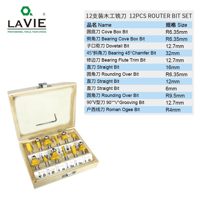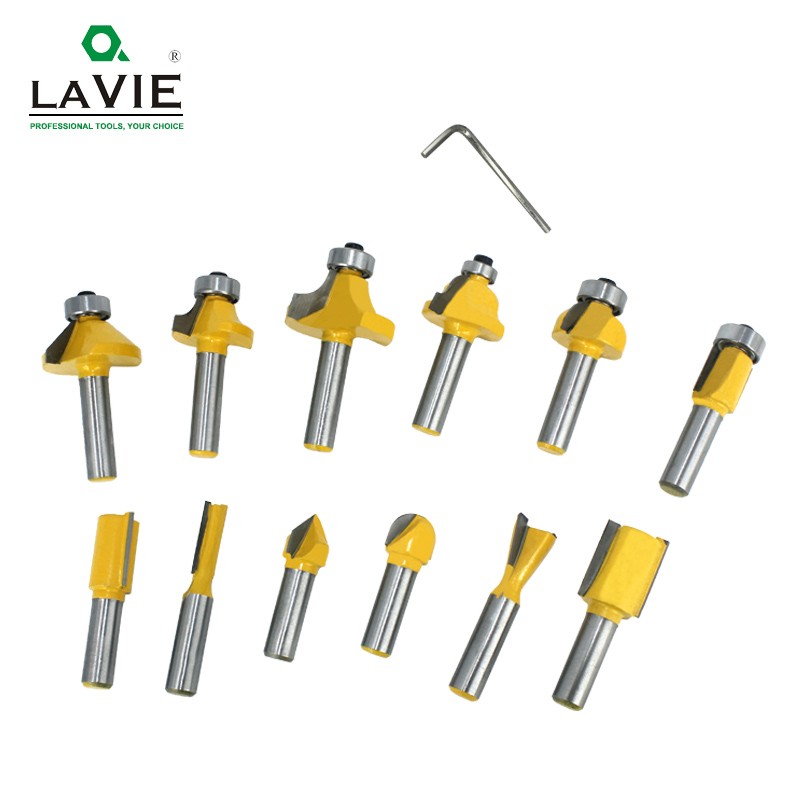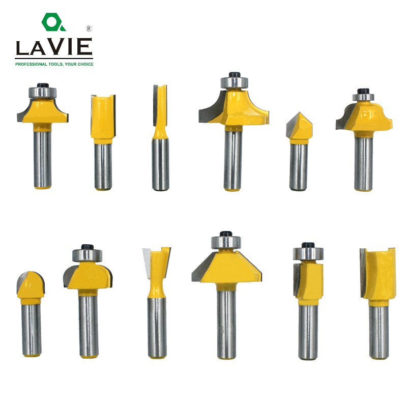 Lavie-Juego De Cortador De Fresado Recto, Caja Con Brocas Para Recorte Madera, Carburo De Tungsteno Para Carpintería Mc02006 8 Mm, 12 Piezas