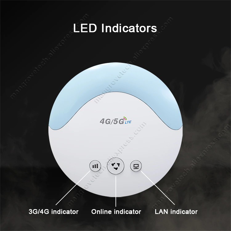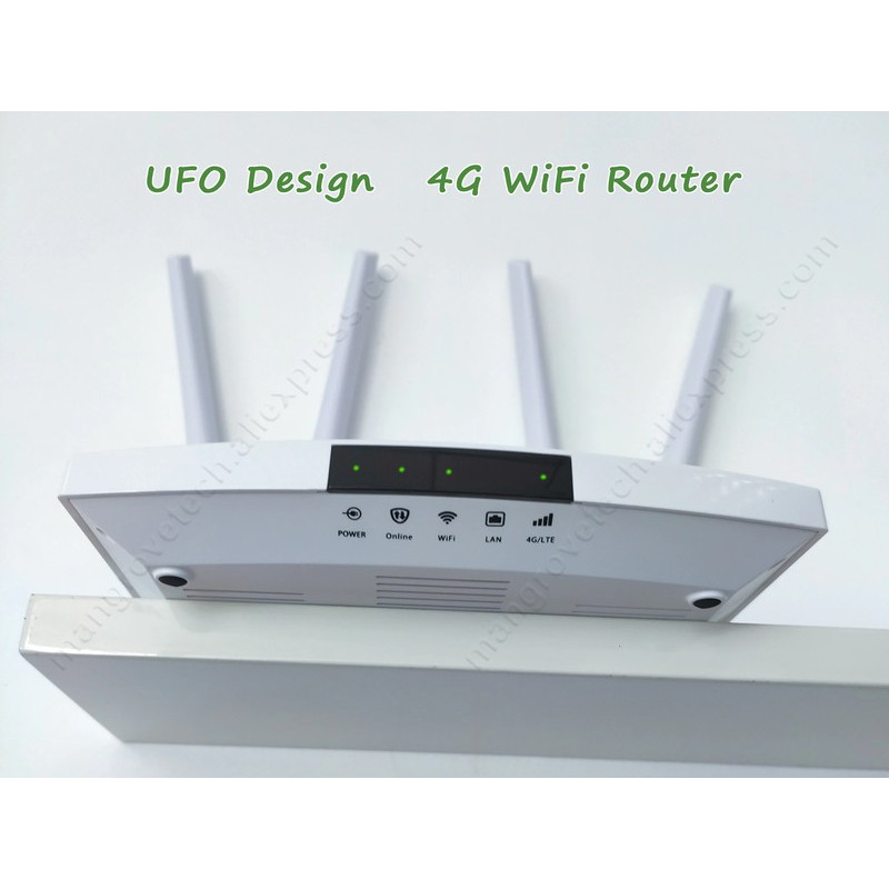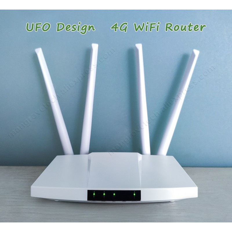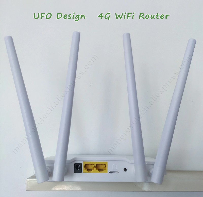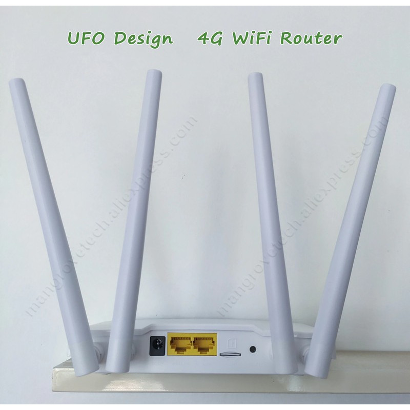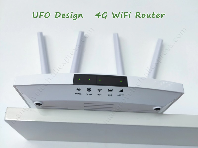 LC112(LM321) 4G CPE es un enrutador wifi de escritorio 4G LTE con un diseño genial de forma de nave espacial UFO, cuatro antenas externas, 2 puertos RJ45, compatible con 32 usuarios WiFi, utiliza tarjeta Micro SIM.