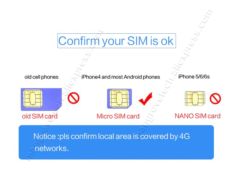 1. Nuestro enrutador/módem 4G solo admite tarjetas SIM normales universales. Para algunas tarjetas SIM bloqueadas, contrate tarjetas SIM que los operadores no permiten usar en enrutadores wifi o solo permiten usar en sus dispositivos autorizados. Es posible que este artículo no funcione. (Si su tarjeta SIM no puede acceder a Internet, por favor no se preocupe. Por lo general, cambia la tarjeta SIM universal de otro operador, entonces funcionará. O puede contactarnos para obtener ayuda.)
