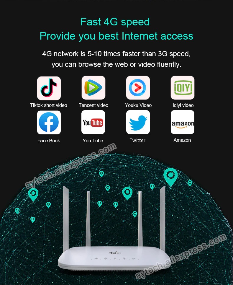 La capacidad máxima del chipset 4G del Router es de 150M, y la velocidad máxima teórica de la estación base 4G también es de 150M. Sin embargo, la estación base 4G proporciona servicio a muchos usuarios 4G al mismo tiempo, en lugar de dar ancho de banda completo de 150M a un usuario y fuerza de señal 4G, la limitación de la tarjeta SIM y el entorno también afectarán a la velocidad de la red.