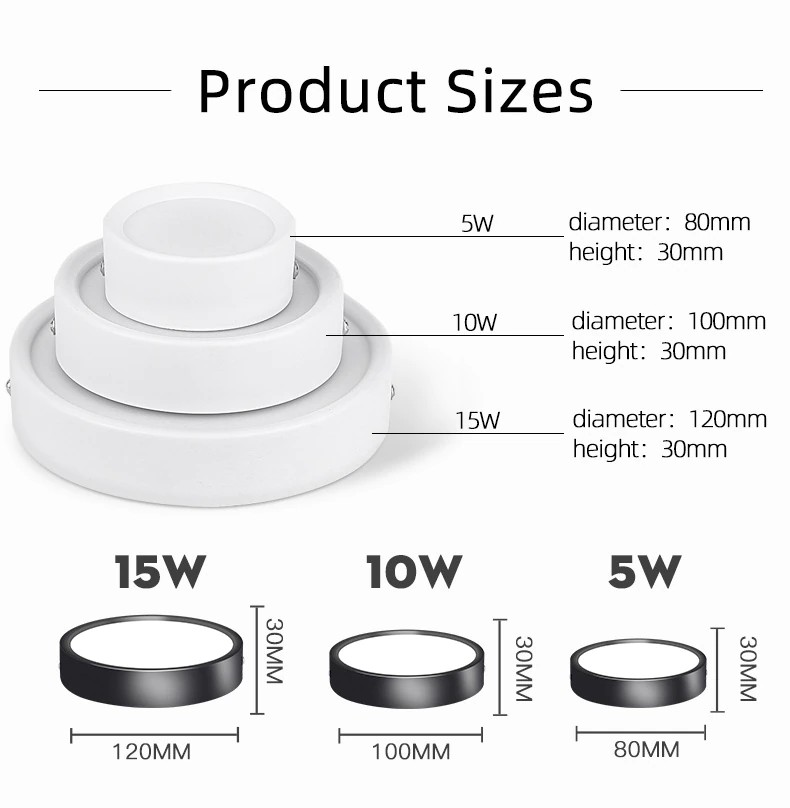 Foco De Luz Led Descendente, Lámpara Montada En Superficie Para Iluminación Interior, Cocina Y Techo 220V, 5W/10/15/25W