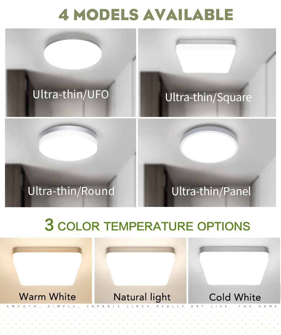 Luces de techo LED para iluminación de habitación con blanco frío, blanco cálido y luz Natural