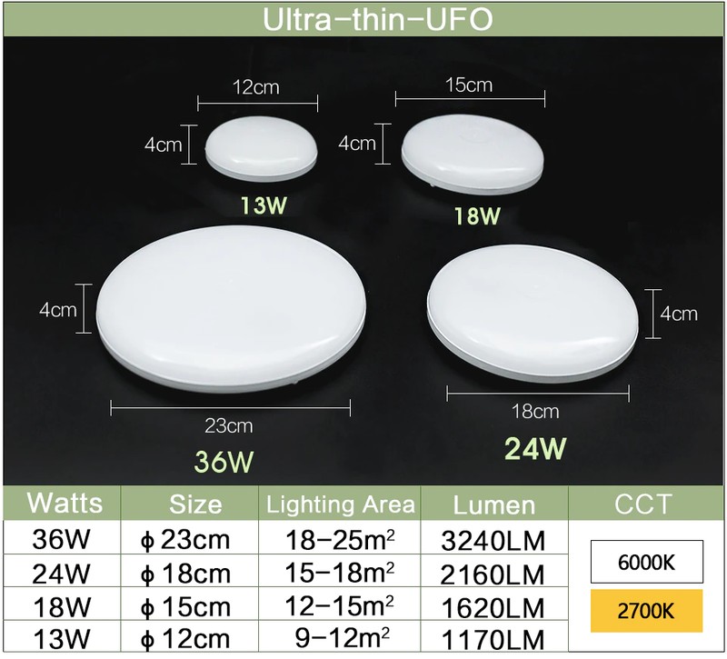 -36W: Para 18-25 metros cuadrados, 3240lm;