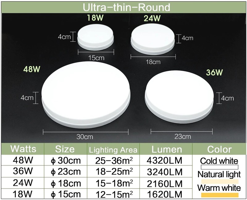 -Atención: la imagen de arriba muestra una imagen real de luz neutra de 48W. Si desea otras tallas, confirme antes del pago.