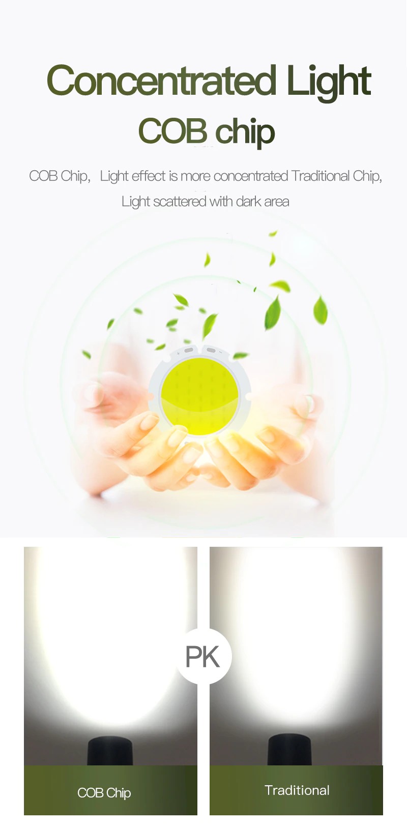 Chip COB, el efecto de la Luz es un Chip tradicional más integrado,.