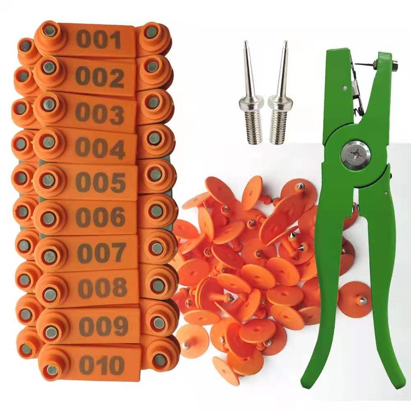 Alicates De Etiqueta De Oreja Animal Ganado, Kit Identificación Oreja Oveja, 001-100, Con 2 Pines Para Instalar Etiquetas De Ganado Y Cerdos