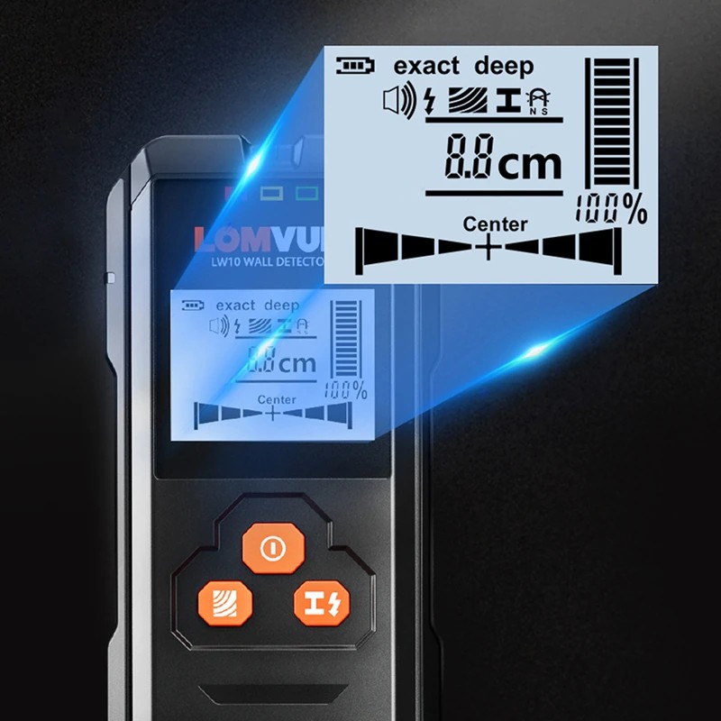 Puede detectar los cables de corriente alterna, cobre, madera, metal bajo tierra y dentro de la pared mediante el detector de metales lomvum.