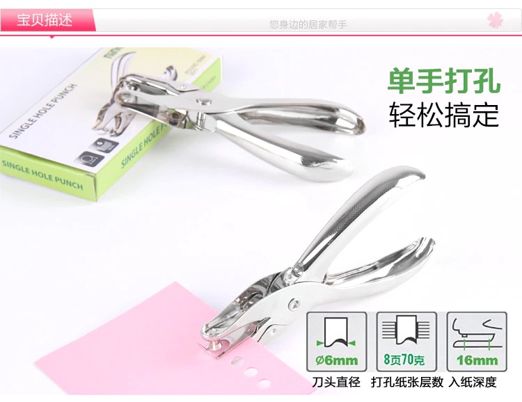 Lonelyeyes-Perforadora De Metal Para Escuela Y Oficina, Perforadora De Un Solo Orificio, Perforadora Papel Mano Para Álbum Recortes Álbum De Recortes, 1 Unidad