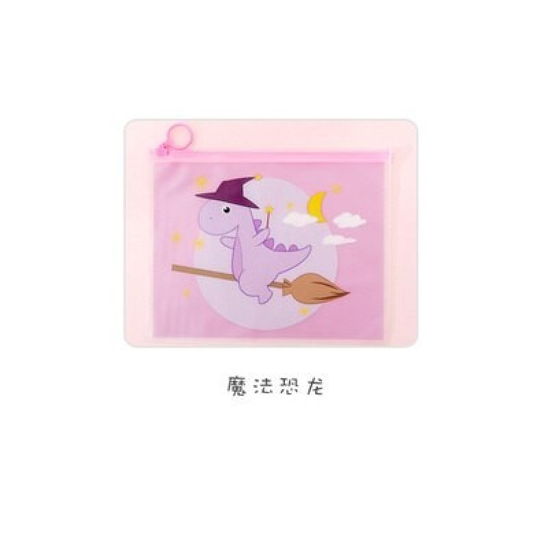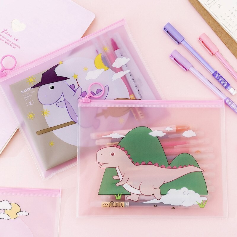 Bolsa De Pvc Transparente Para Archivador De Documentos, Bolsa De Papelería, Con Cremallera Dinosaurio Kawaii Mágico, A5