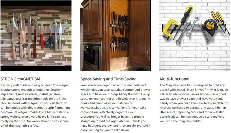 * Con un diseño simple, esta barra de cuchillos se combinará con la decoración de su cocina.