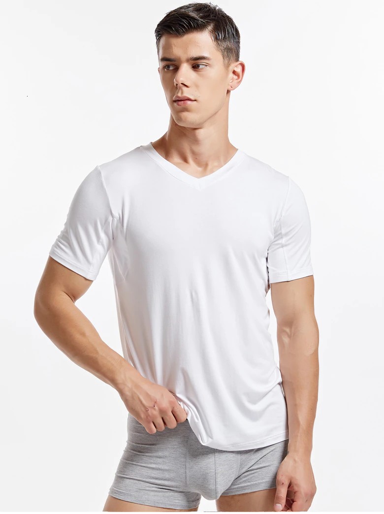 Ropa Interior Elástica Para Hombre, Camisetas De Manga Corta Con Cuello De Pico, Ropa Dormir De Talla Grande, 5359