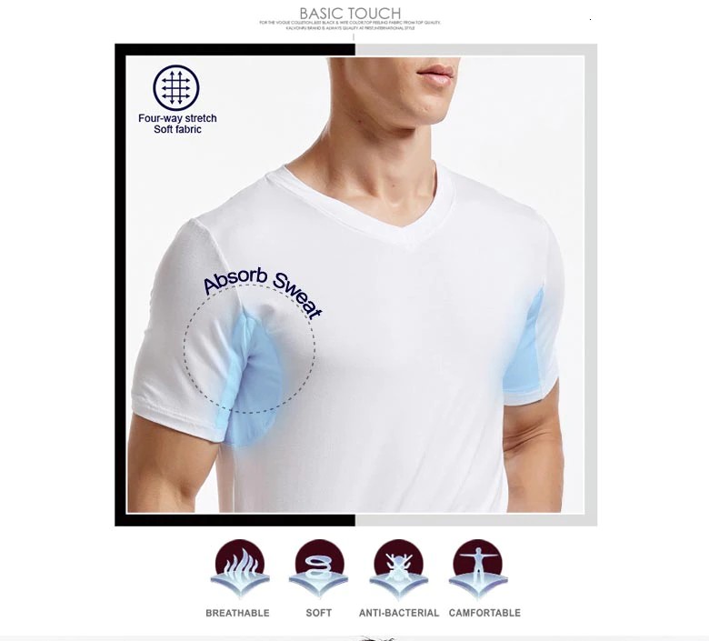 Diseño: absorbe el sudor, respire libremente, el cuello en V, apretado, antitranspirante, ultra delgado