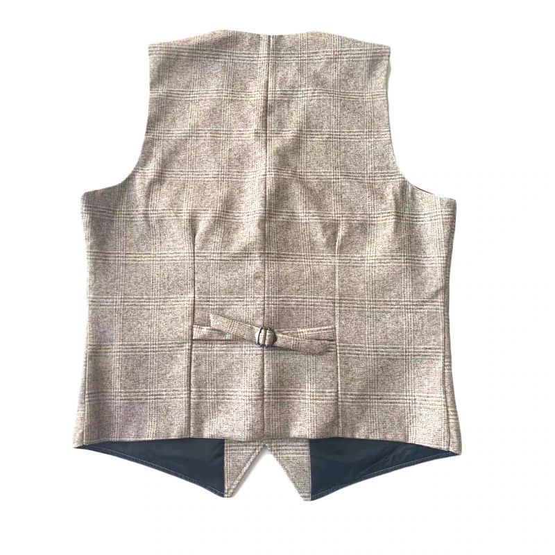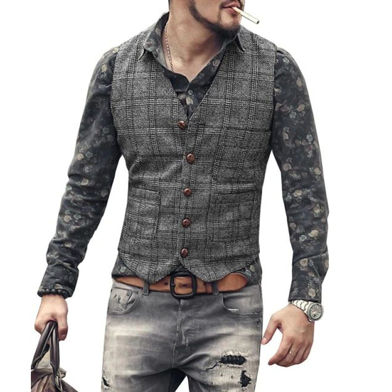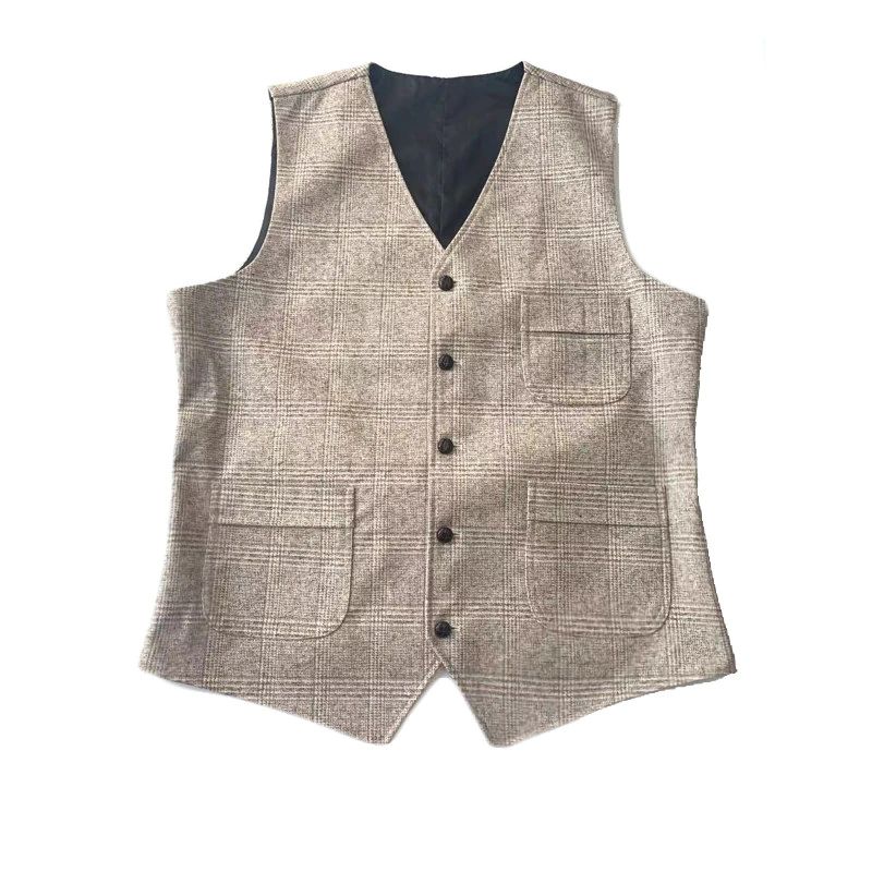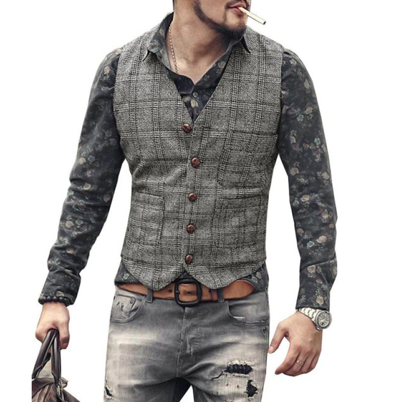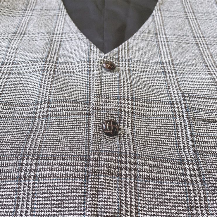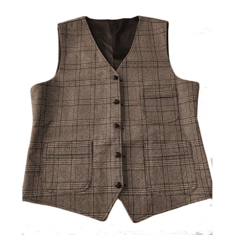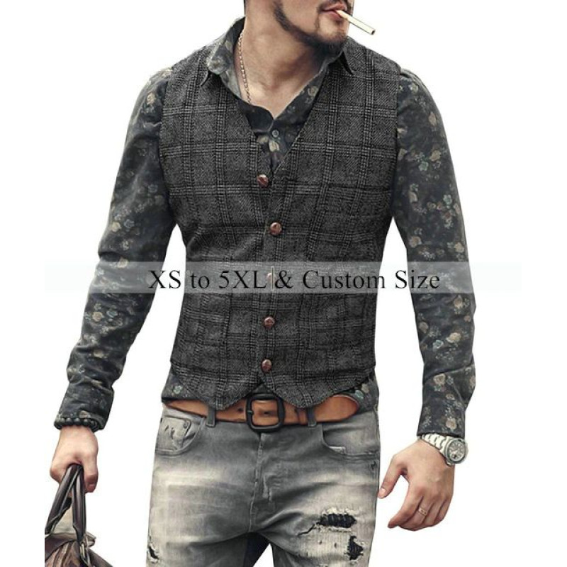 Chaleco De Traje Para Hombre, Chaqueta Steampunk A Cuadros A Rayas, Cuello En V Slim Fit Ropa De Boda, Marrón Y Negro