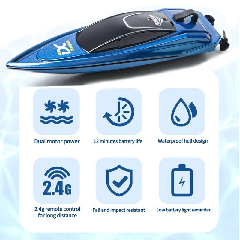 Mini Barco De Carreras A Control Remoto Para Niños Y Niñas, Bote De Alta Velocidad 5 Km/H, Barco Juguete Con Alarma Batería Baja Capsize, Regalos De Recuperación