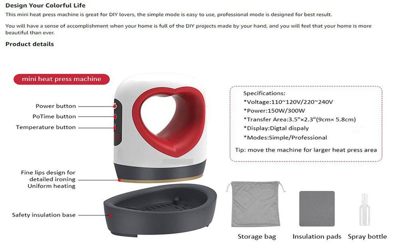 【Reflexivo y ampliamente usado】pequeño y fácil de llevar. Adecuado para transferir fotos o texto en camisetas, ropa, bolsos, alfombrillas de ratón, sombreros, zapatos, peluches, etc. Por seguridad, espera a que se enfríe completamente antes de almacenarlo. Habrá un pitido cuando se caliente a la temperatura establecida, Y se apagará automáticamente si no comienza a funcionar después de 30 minutos.