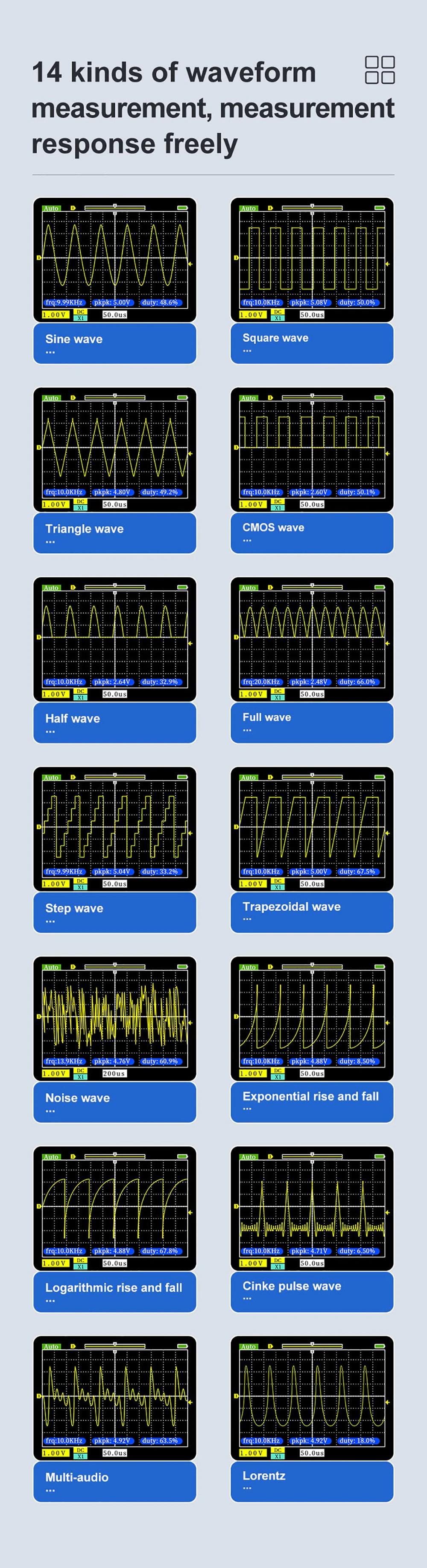 Número de tipos de medición de forma de onda: 14 tipos