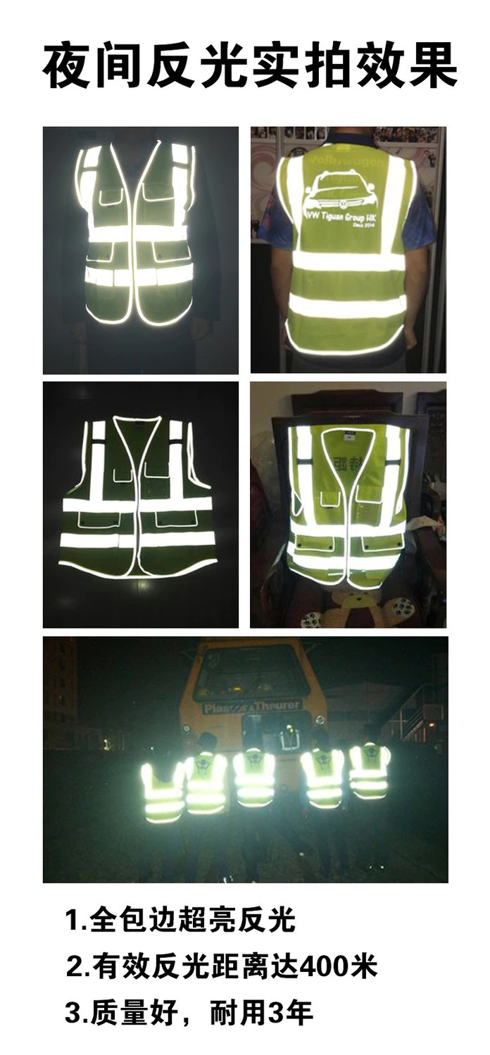 Seguro y fiable-la tira reflectante de fibra química de alto brillo puede garantizar un súper reflejo de 360 °, función reflectante e impermeable de alta visibilidad del chaleco reflectante, asegurando su seguridad en todos los aspectos.