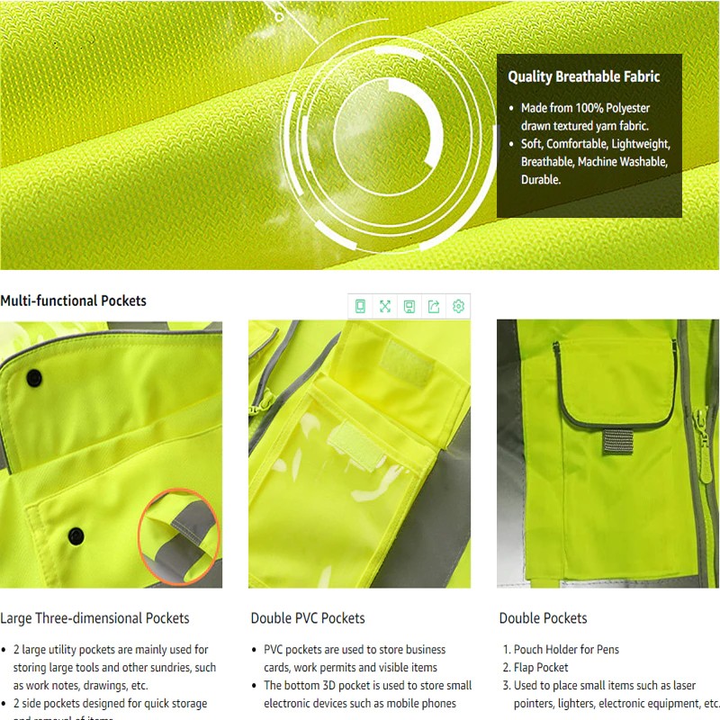 Chaleco de seguridad reflectante con múltiples bolsillos, chaleco de transporte para montar, chaleco de Construcción Uniforme Ansi de clase 3, malla transpirable para bicicleta de mujer