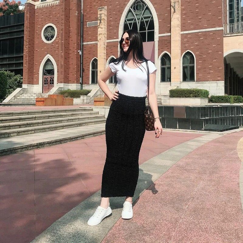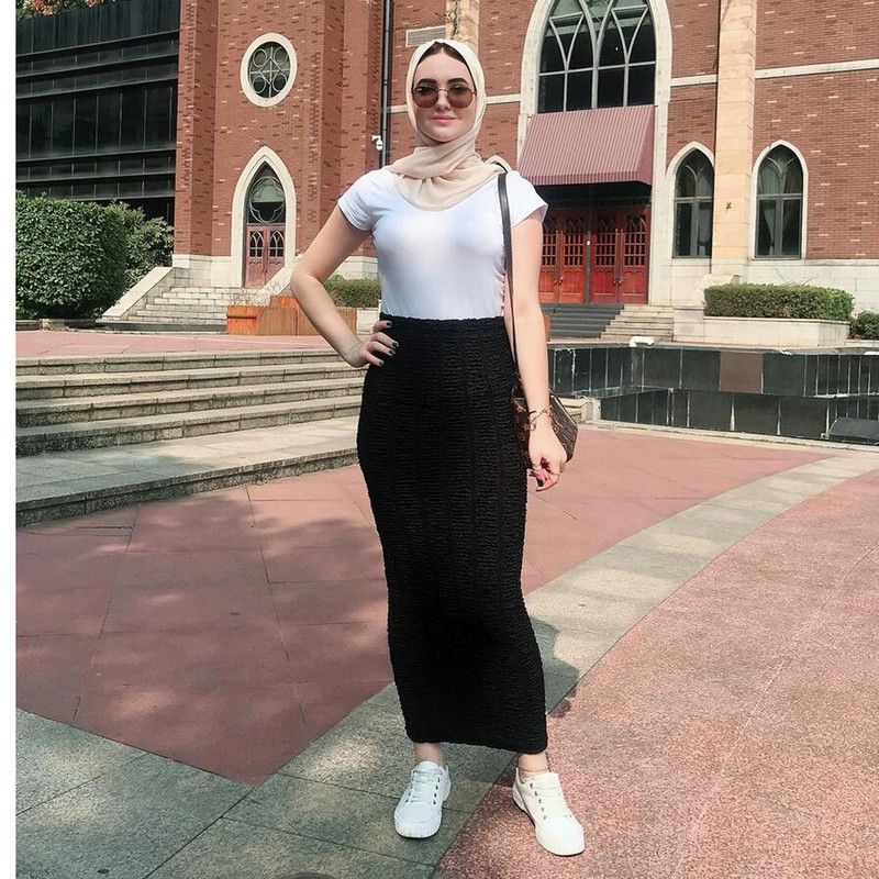 Falda Musulmana Ceñida Y Elástica Para Mujer, Maxifalda De Punto, Color Sólido Ramadán Corte Recto, Cintura Alta