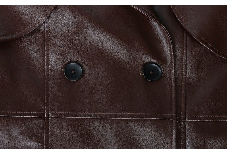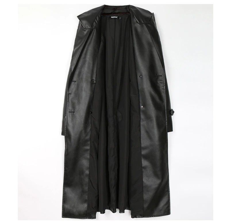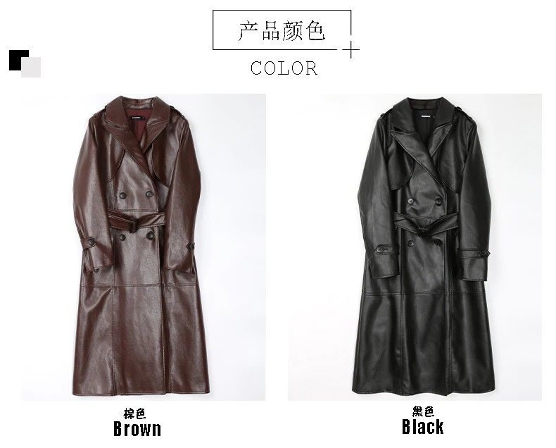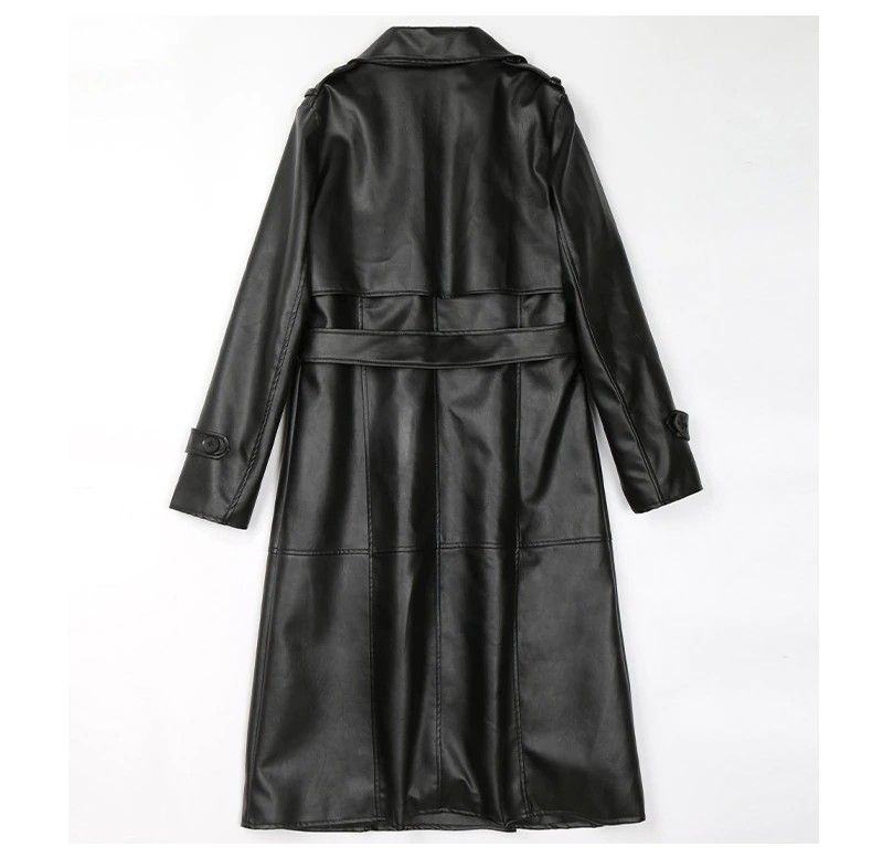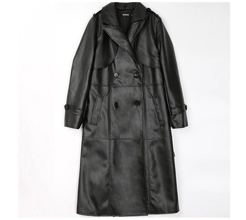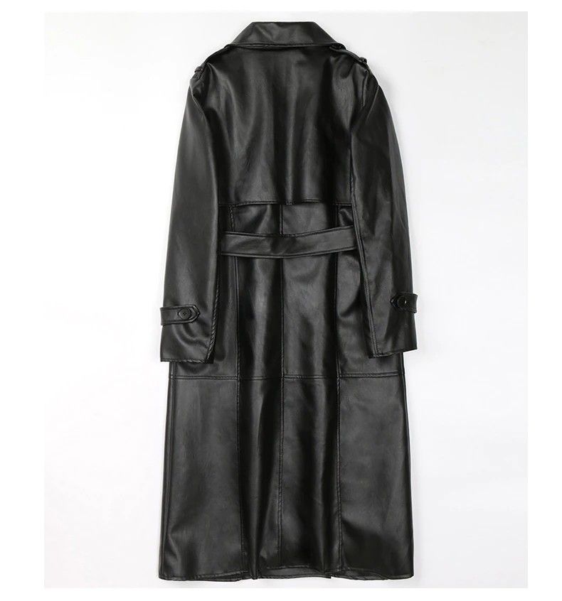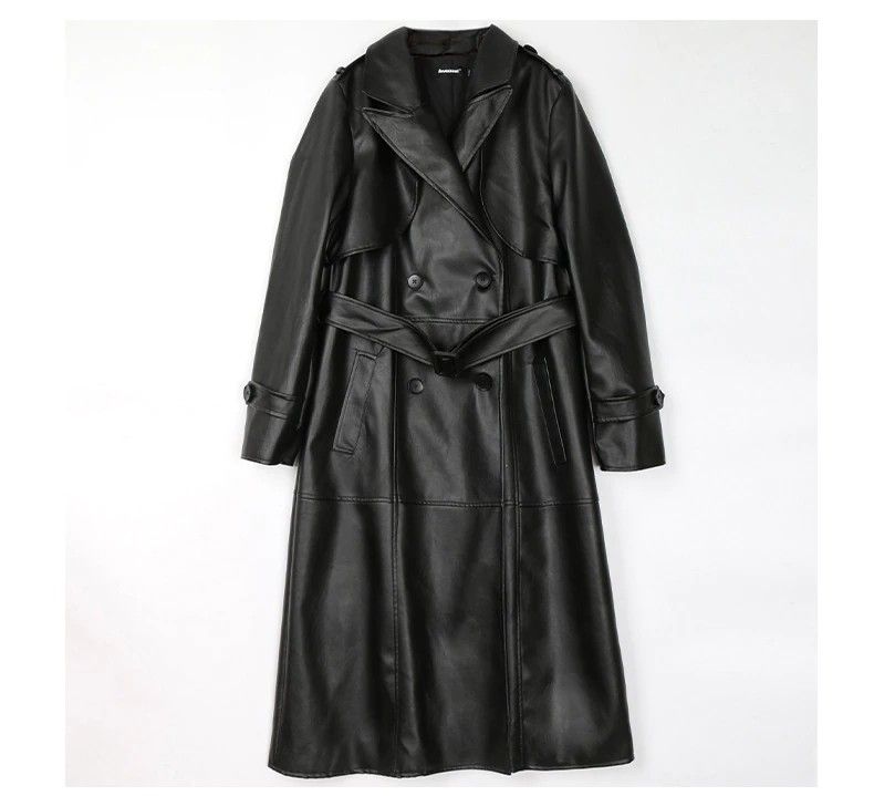 Nerazzurri-Gabardina Larga De Piel Sintética Para Mujer, Abrigo Negro Con Cinturón De Manga Larga, Doble Botonadura Talla Grande Moda De Otoño 7Xl, Más reciente