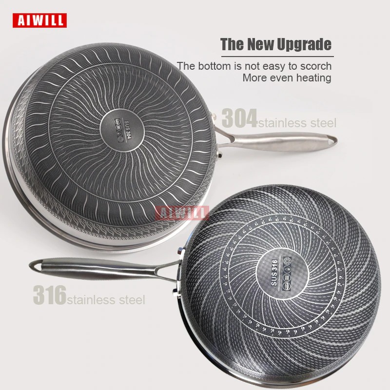 Aiwill-Sartén Antiadherente De Acero Inoxidable 316 /304, Horno Electromagnético De Alta Calidad, Para Carne Frita