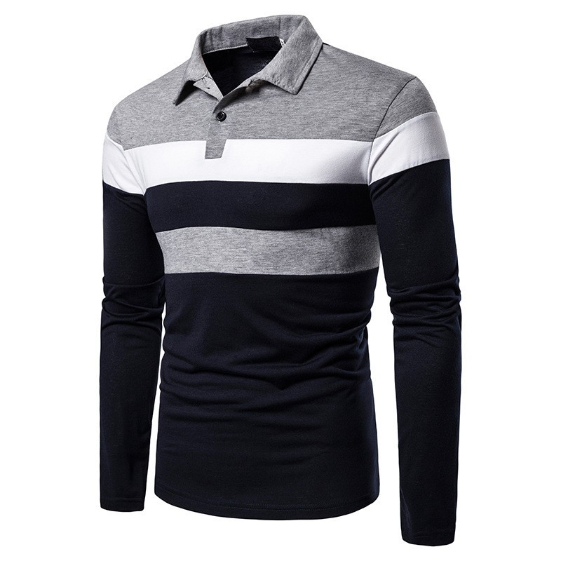 Camisas De Manga Larga Para Hombre, Camisas De Cuello Levantado Para Hombre, Camisas Casuales Retazos A Rayas Camisetas Béisbol Moda De Otoño, El más nuevo