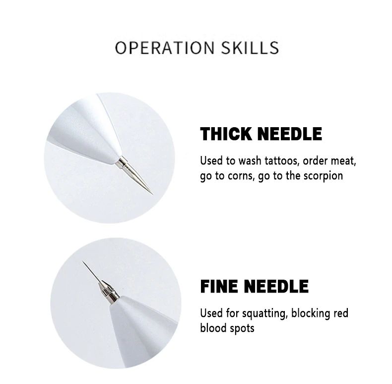 Generalmente quema tatuajes y tatuajes, su área es más grande, utiliza una aguja grande, el método de quemar tatuajes, aproximadamente el mismo que el punto de escaneo, el tiempo de funcionamiento puede ser ligeramente más largo, el área es demasiado grande (más de 3cm) debe lidiar muchas veces, nunca una vez.
