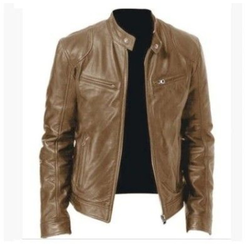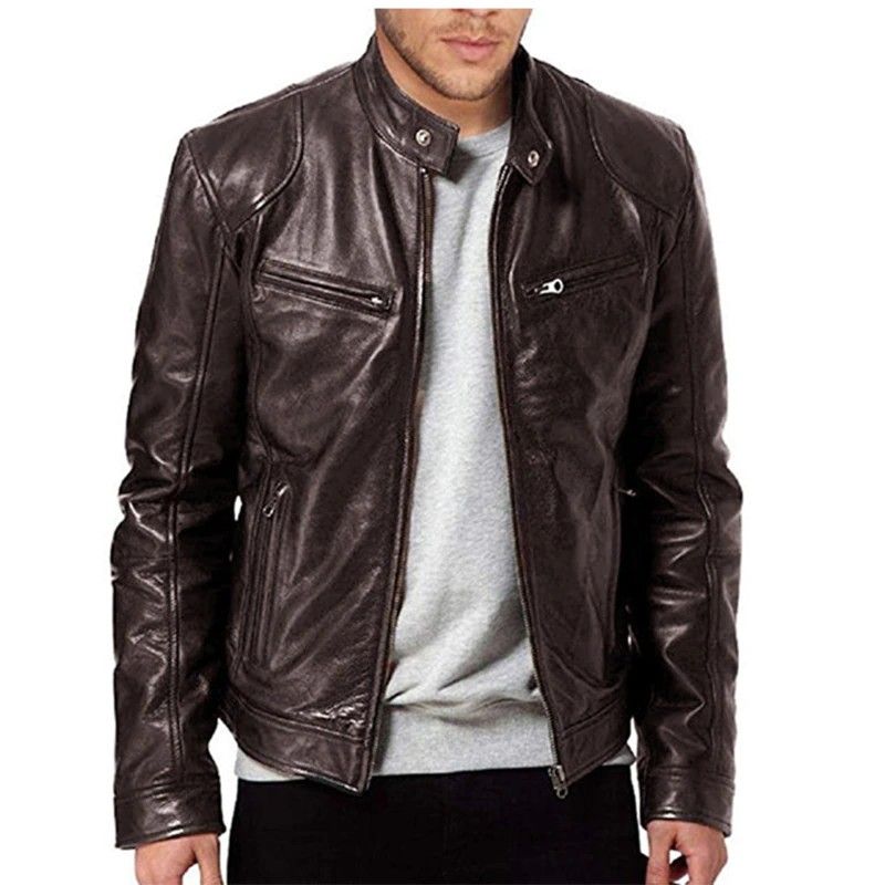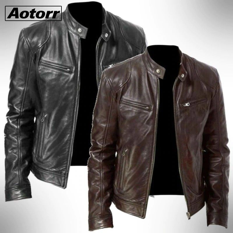 Chaqueta De Cuero Para Hombre, Cazadora De Pu Con Cuello Levantado, A La Moda Con Solapa Diagonal Y Cremallera Antiviento 5Xl, El más nuevo