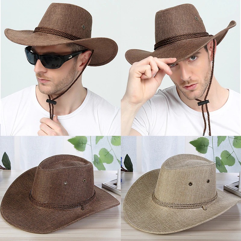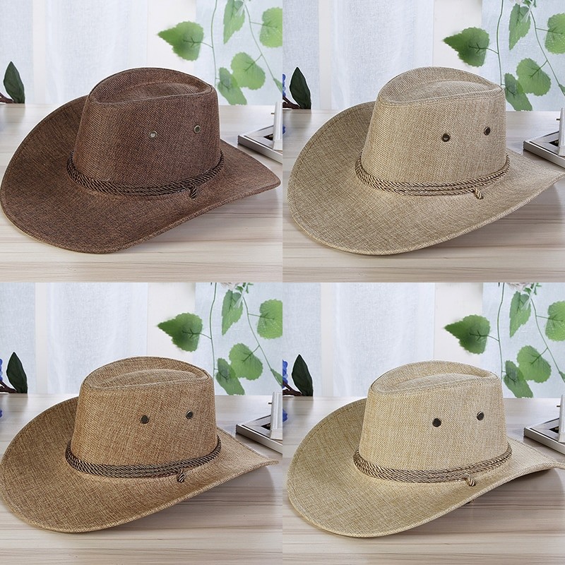 Sombrero De Vaquero Occidental Para Hombre, Sombrero De Paja Lino A La Moda, Viaje Al Aire Libre Jazz Ala Grande Chic Para Exteriores, Novedad De El más nuevo