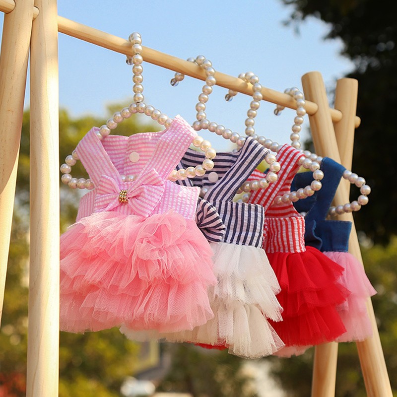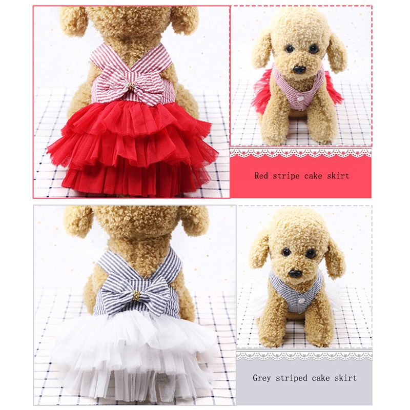 Falda de malla a rayas para mascotas, material de poliéster, tela cómoda y agradable para la piel. Estilo princesa, lindo y dulce, las mascotas son aún más lindas y dulces después de usarlas.
