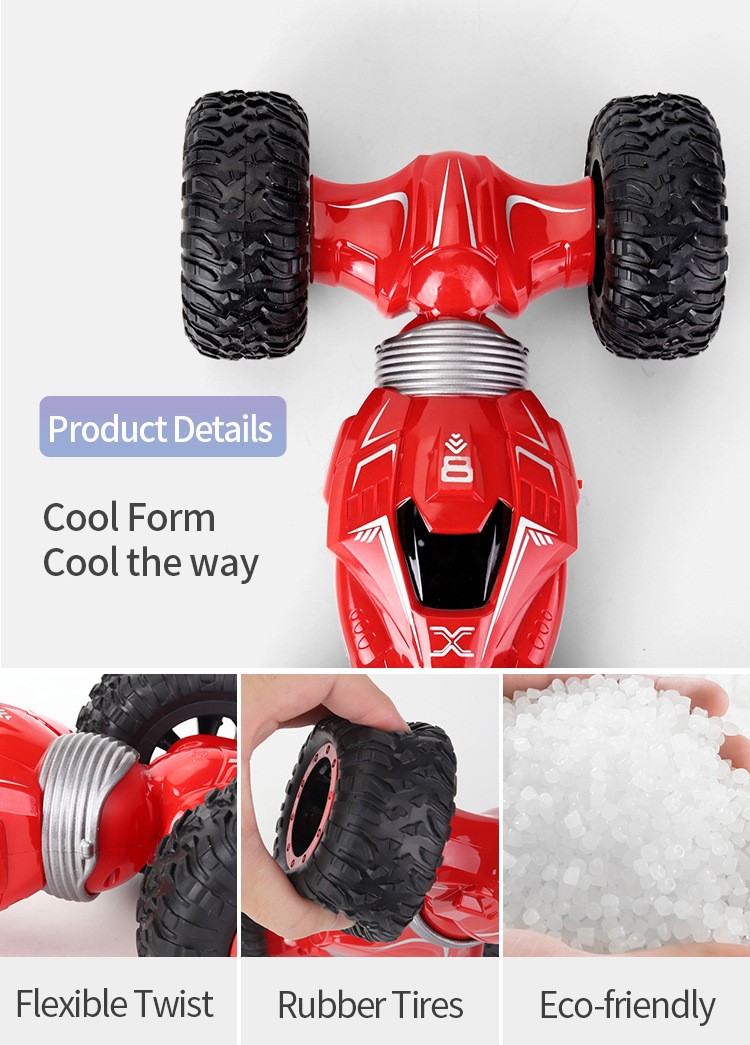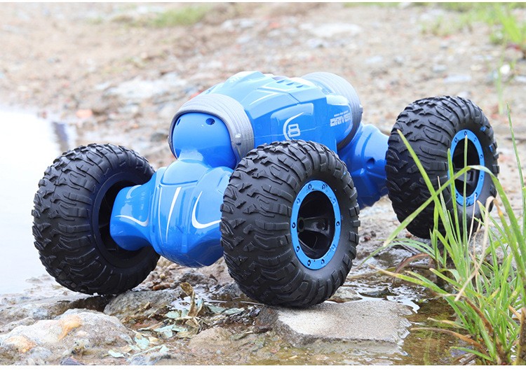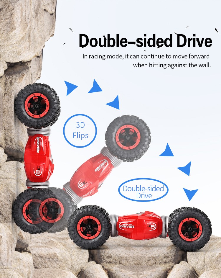 ¡Un vehículo RC de 2.4 gHz de doble cara con un potente motor cepillado, hace un salto mortal sin esfuerzo!