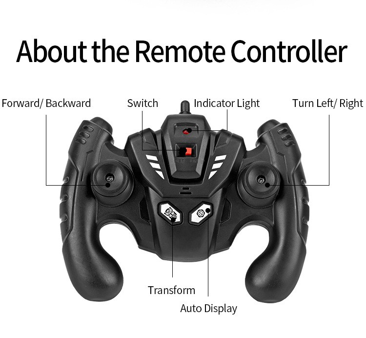 Características funcionales: diseño del cuerpo de doble cara, avance, retroceso, giro a la izquierda, giro a la derecha, transformación, visualización automática.