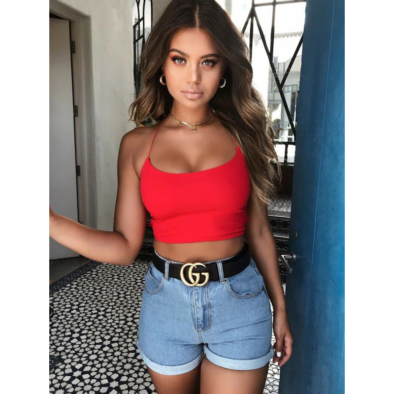 Camiseta Sin Mangas Para Mujer, Top Corto Sexy Para Mujer, Tops Deportivos Sin Mangas Playa Bodycon Fiesta Espalda Descubierta Tirantes Finos, Ropa Para Discoteca El más nuevo