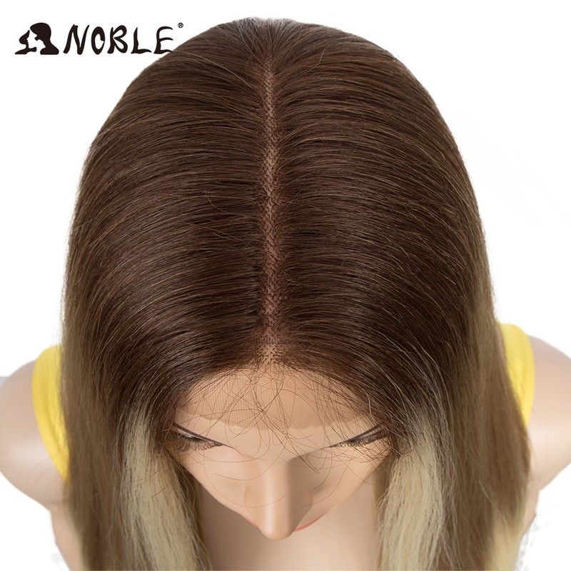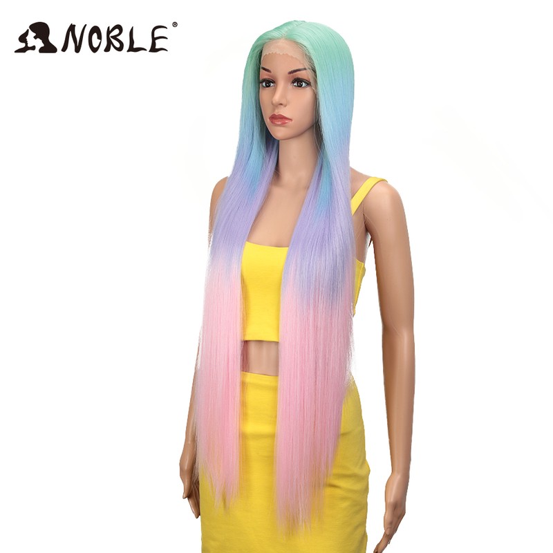 Noble-Peluca De Cabello Sintético Con Malla Frontal Para Mujer, Pelo Liso De 38 Pulgadas, Color Rubio Degradado, Cosplay Pelucas De Mujer