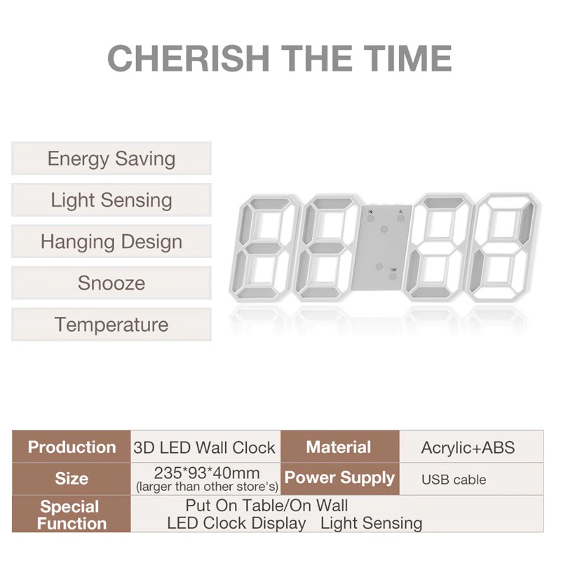 Batería: CR2032 (para el tiempo de memoria cuando se corta la energía, la batería no está incluida, el reloj está alimentado por cable USB)