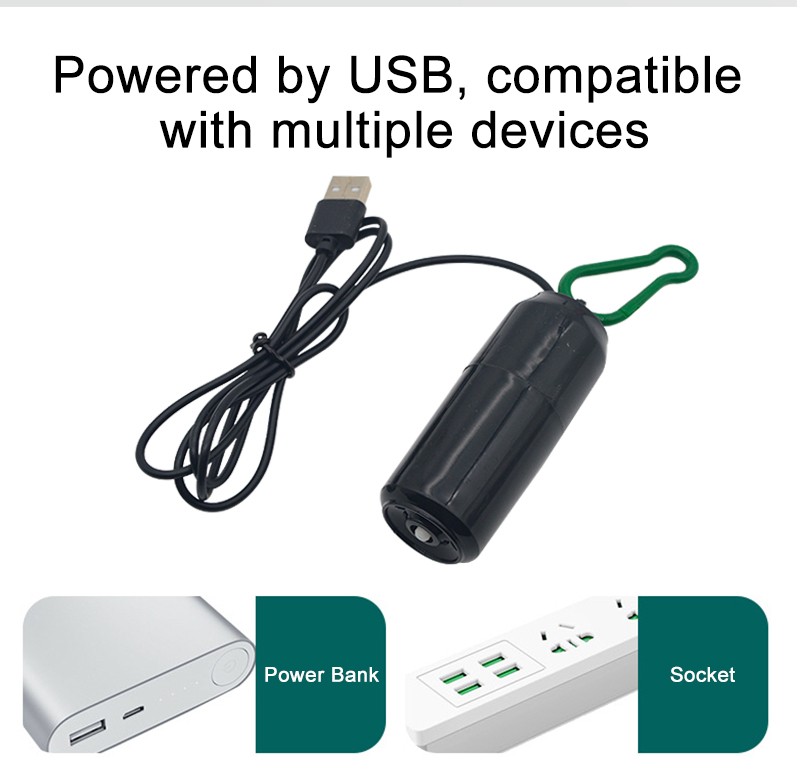 4. Fuente de alimentación USB, puede obtener electricidad a través de enchufes, bancos de energía y coches.